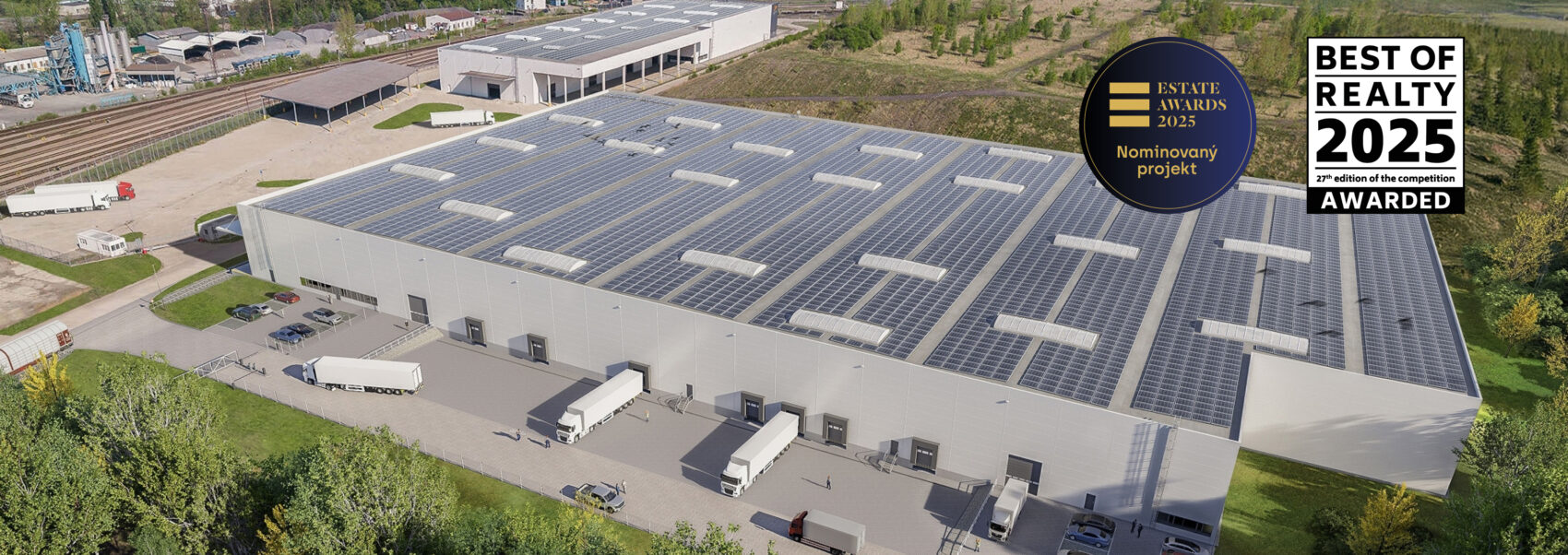 V prosinci 2022 jsme úspěšně dokončili moderní cross-dockovou halu DMC 1 pro společnost ŠKODA AUTO, která disponuje 9 022 m² průmyslové plochy včetně přístřešků pro expedici a 866 m² kancelářských prostor a sociálního zázemí. Součástí technického řešení je přístřešek pro gitter boxy s nakládacími rampami, které zajišťují plynulý tok materiálu. Díky možnosti nakládky a vykládky gigalinerů objekt podporuje vyšší přepravní kapacity a zefektivňuje celý dodavatelský řetězec. Hala je rovněž připravena na budoucnost elektromobility – disponuje rychlonabíjecími stanicemi pro osobní automobily a technickou infrastrukturou pro nabíjení elektrických kamionů.